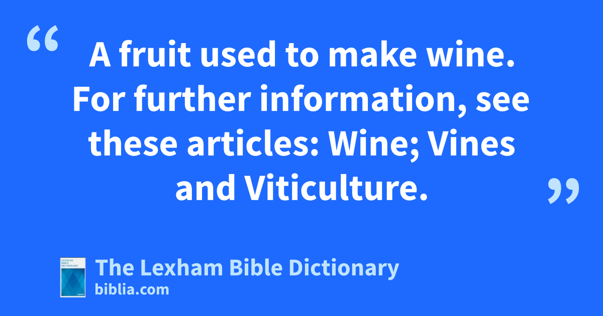 Grape A fruit used to make wine. For further information, see these articles: Wine; Vines and Viticulture.