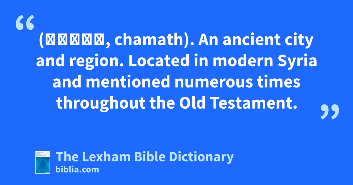 Hamath (חֲמָת, chamath). An ancient city and region. Located in modern Syria and mentioned numerous times throughout the Old Testament.