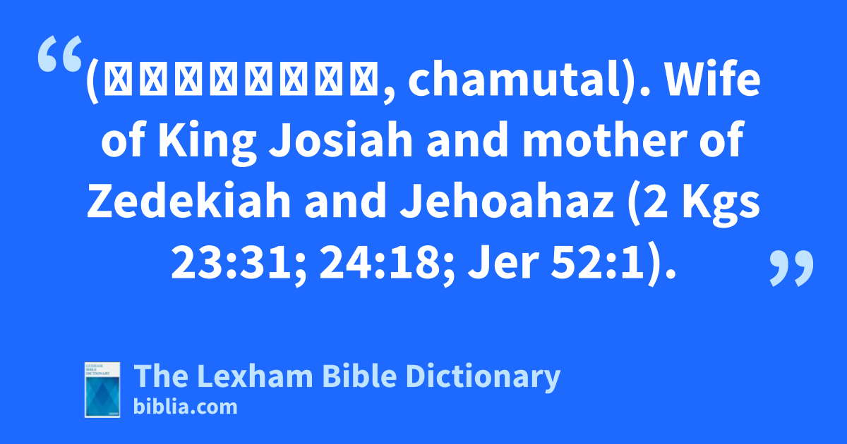 Hamutal, Daughter of Jeremiah (חֲמוּטַל, chamutal). Wife of King Josiah and mother of Zedekiah and Jehoahaz (2 Kgs 23:31; 24:18; Jer 52:1).