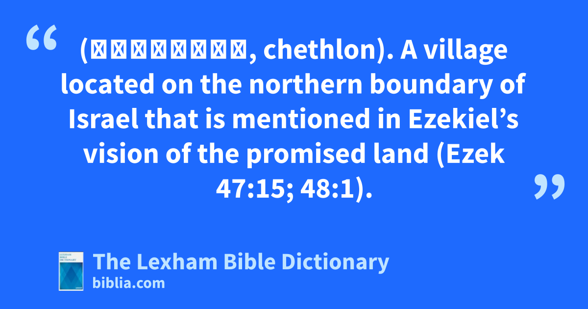 Hethlon (חֶתְלוֹן, chethlon). A village located on the northern boundary of Israel that is mentioned in Ezekiel’s vision of the promised land (Ezek 47:15; 48:1).