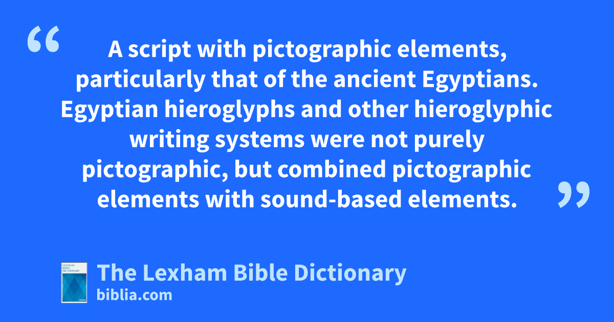 Hieroglyphs A script with pictographic elements, particularly that of the ancient Egyptians. Egyptian hieroglyphs and other hieroglyphic writing systems were not purely pictographic, but combined pictographic elements with sound-based elements.