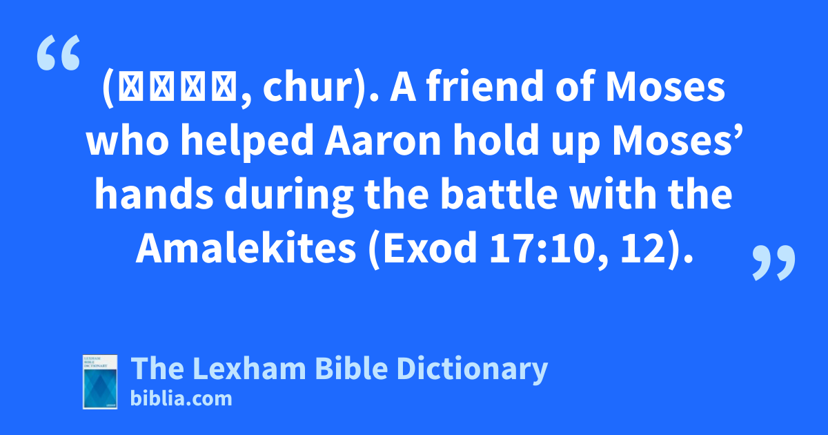 Hur the Friend of Moses (חוּר, chur). A friend of Moses who helped Aaron hold up Moses’ hands during the battle with the Amalekites (Exod 17:10, 12).