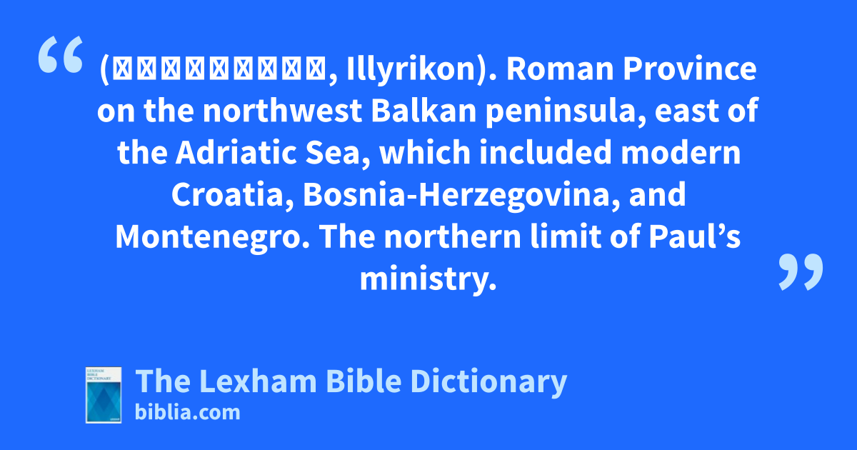 Illyricum (Ἰλλυρικόν, Illyrikon). Roman Province on the northwest Balkan peninsula, east of the Adriatic Sea, which included modern Croatia, Bosnia-Herzegovina, and Montenegro. The northern limit of Paul’s ministry.
