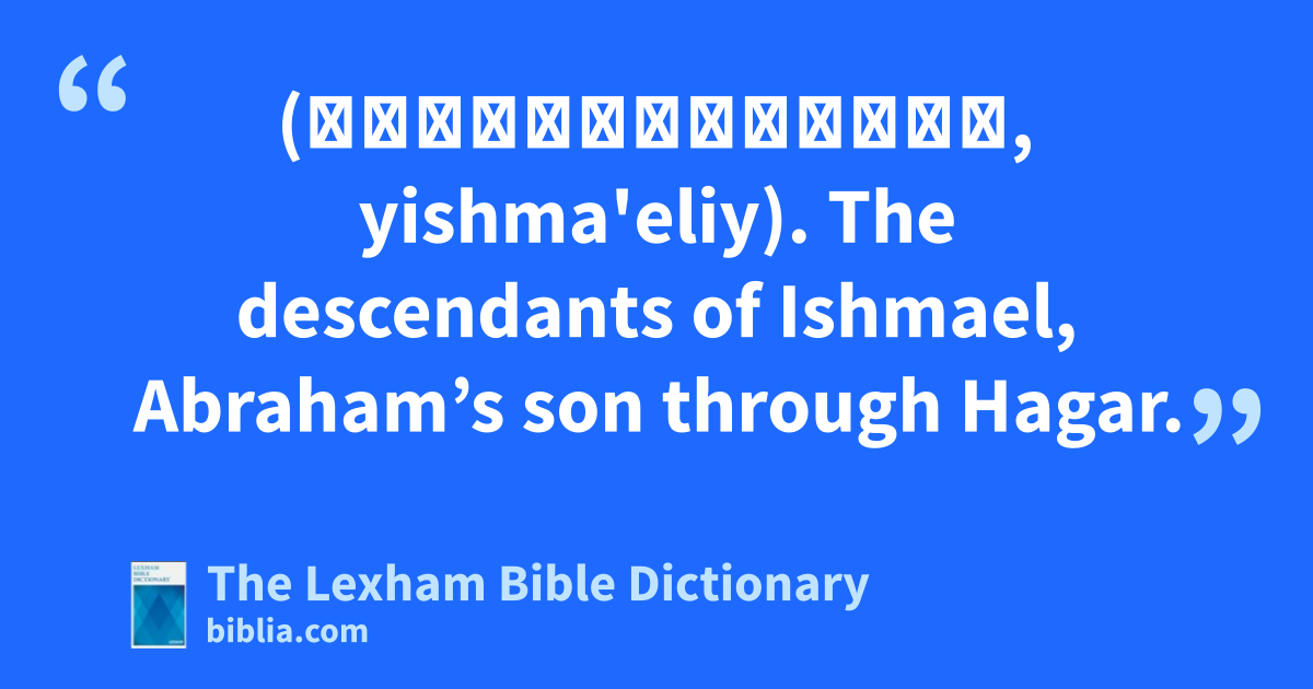 Ishmaelites (יִשְׁמָעֵאלִי, yishma'eliy). The descendants of Ishmael, Abraham’s son through Hagar.