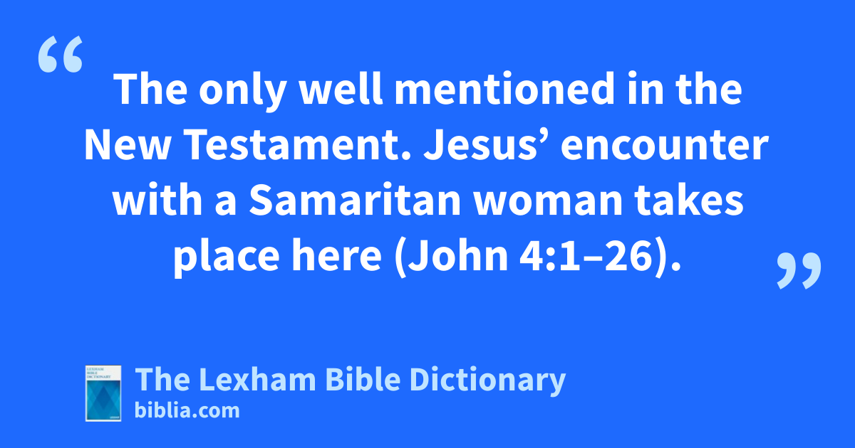 Jacob’s Well The only well mentioned in the New Testament. Jesus’ encounter with a Samaritan woman takes place here (John 4:1–26).