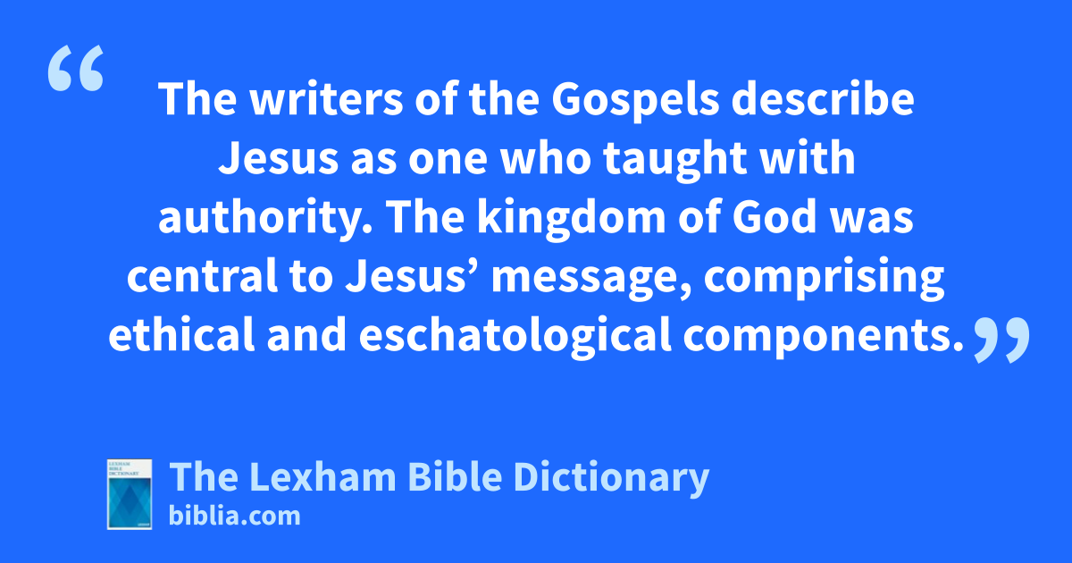 Jesus, Teachings Of The writers of the Gospels describe Jesus as one who taught with authority. The kingdom of God was central to Jesus’ message, comprising ethical and eschatological components.