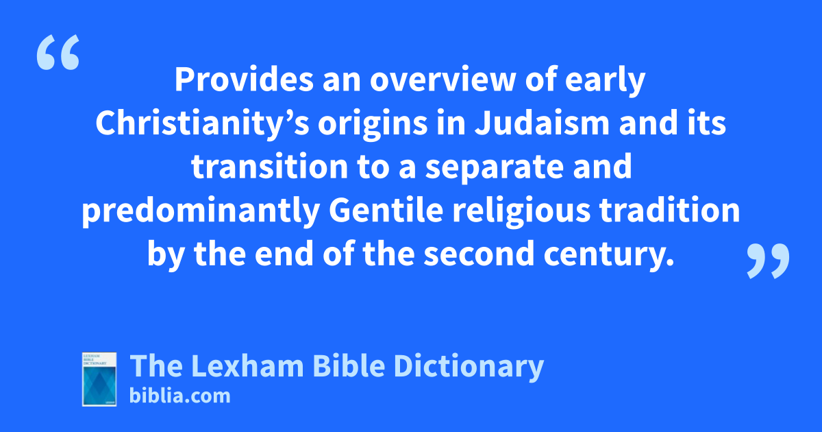 Jewish Christians Provides an overview of early Christianity’s origins in Judaism and its transition to a separate and predominantly Gentile religious tradition by the end of the second century.