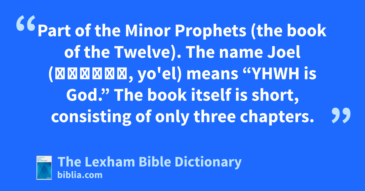 Joel, Book Of Part of the Minor Prophets (the book of the Twelve). The name Joel (יוֹאֵל, yo'el) means “YHWH is God.” The book itself is short, consisting of only three chapters.