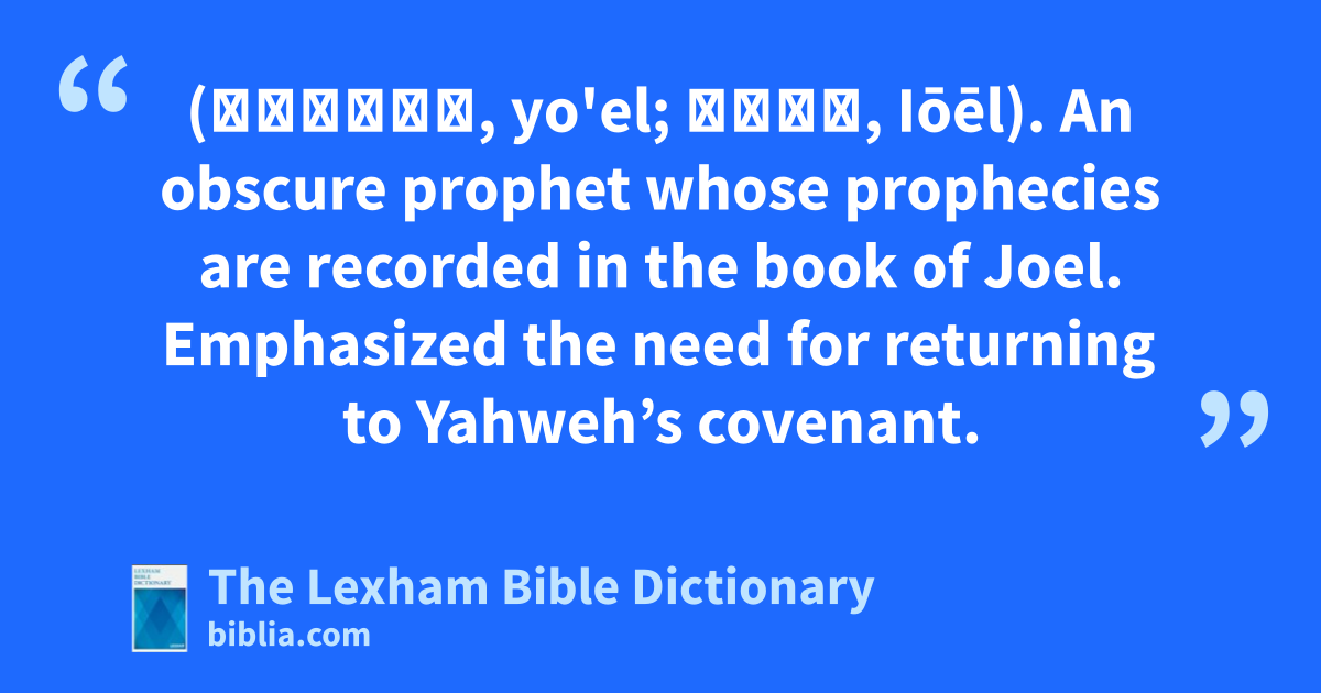 Joel the Prophet (יוֹאֵל, yo'el; Ἰωήλ, Iōēl). An obscure prophet whose prophecies are recorded in the book of Joel. Emphasized the need for returning to Yahweh’s covenant.