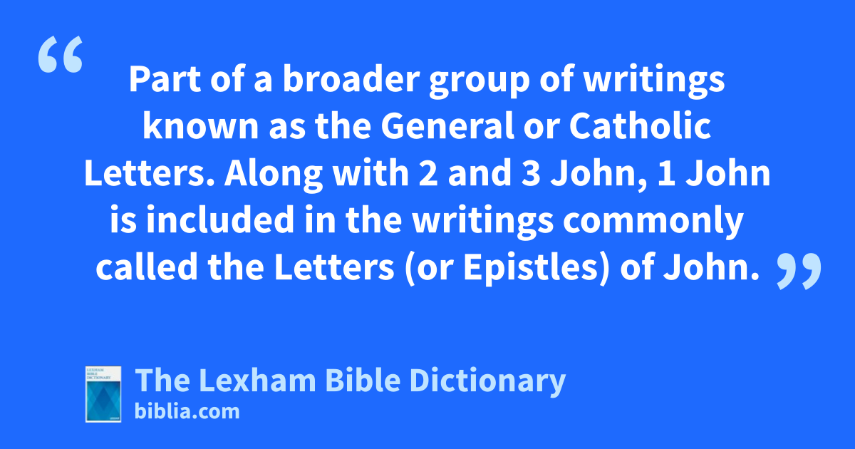 John, First Letter Of Part of a broader group of writings known as the General or Catholic Letters. Along with 2 and 3 John, 1 John is included in the writings commonly called the Letters (or Epistles) of John.