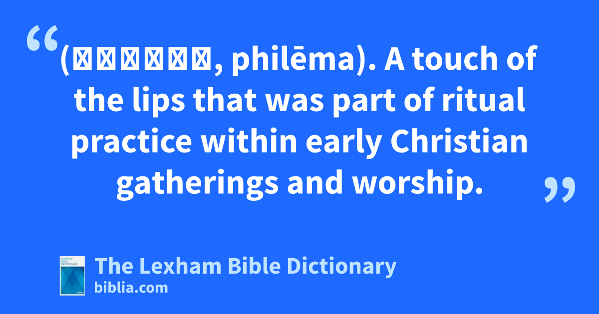 Kiss (φίλημα, philēma). A touch of the lips that was part of ritual practice within early Christian gatherings and worship.