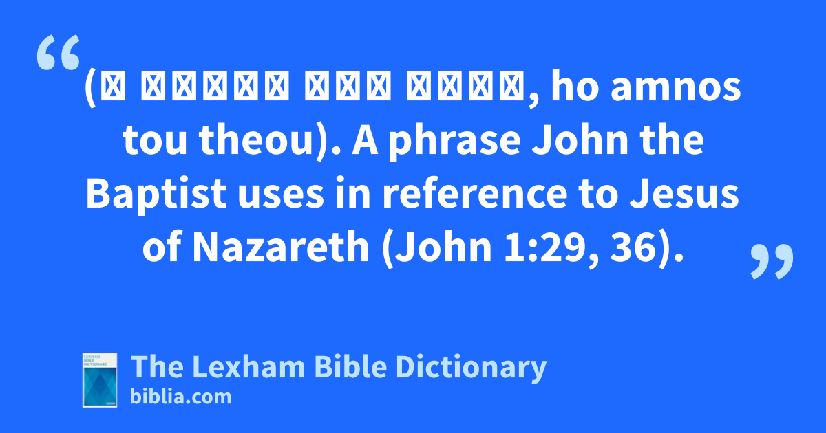 Lamb of God (ὁ ἀμνὸς τοῦ θεοῦ, ho amnos tou theou). A phrase John the Baptist uses in reference to Jesus of Nazareth (John 1:29, 36).