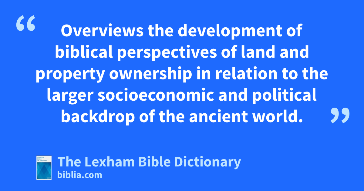 Land Overviews the development of biblical perspectives of land and property ownership in relation to the larger socioeconomic and political backdrop of the ancient world.