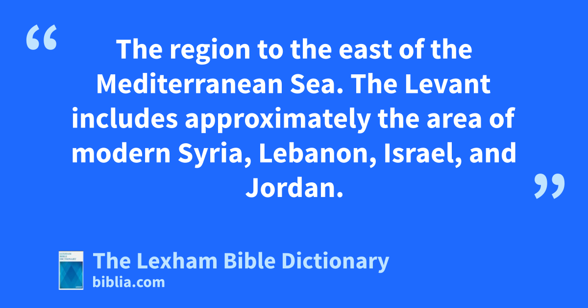 Levant The region to the east of the Mediterranean Sea. The Levant includes approximately the area of modern Syria, Lebanon, Israel, and Jordan.