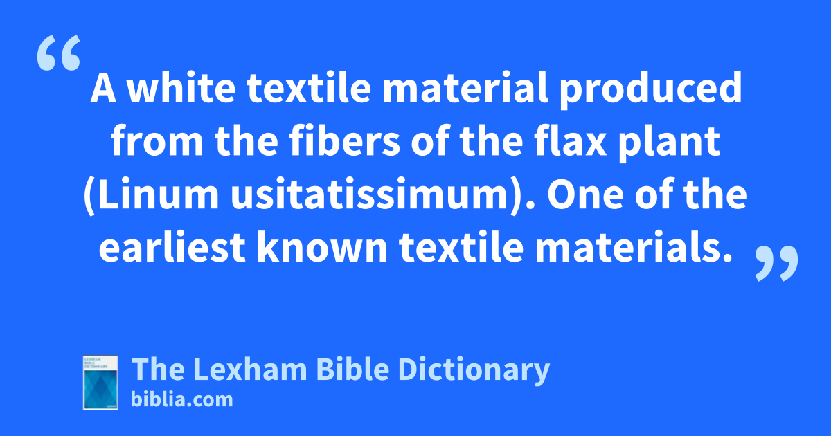 Linen A white textile material produced from the fibers of the flax plant (Linum usitatissimum). One of the earliest known textile materials.