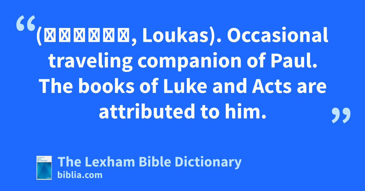 Luke (Λουκᾶς, Loukas). Occasional traveling companion of Paul. The books of Luke and Acts are attributed to him.