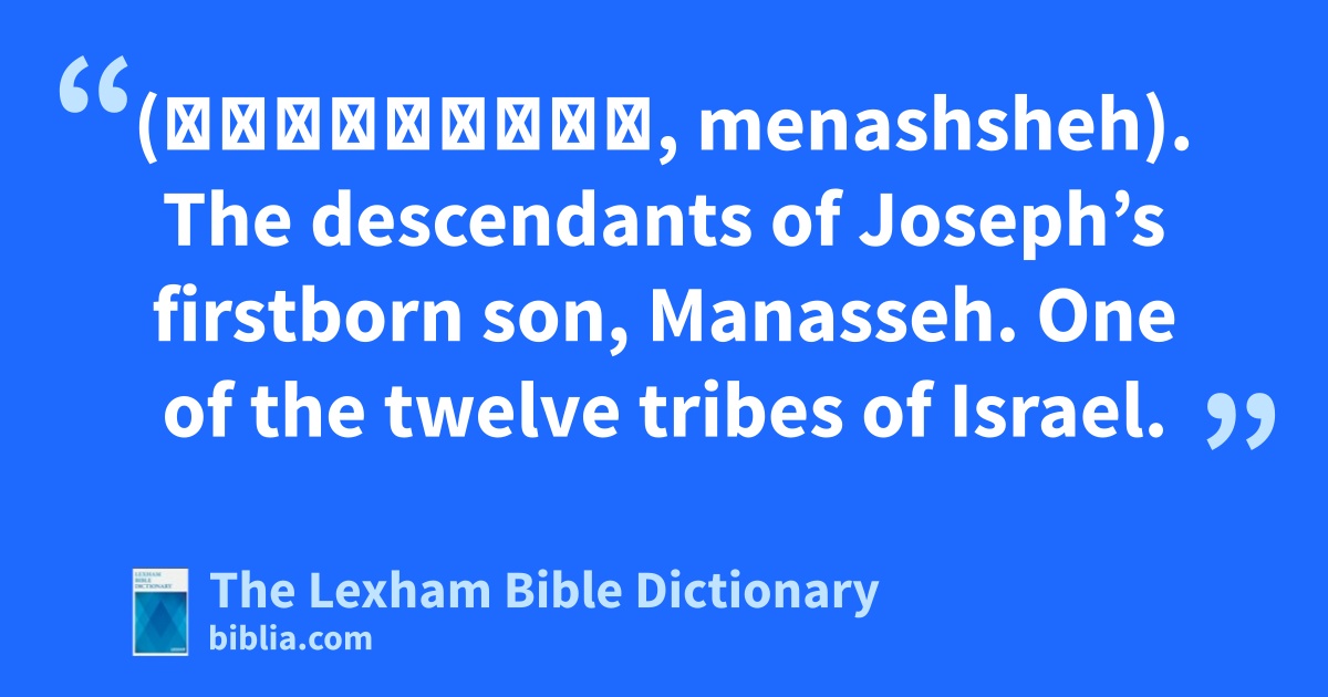 Manasseh, Tribe Of (מְנַשֶּׁה, menashsheh). The descendants of Joseph’s firstborn son, Manasseh. One of the twelve tribes of Israel.