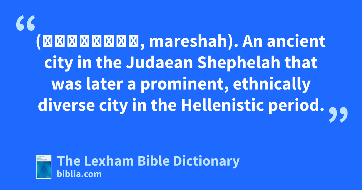 Mareshah (מָרֵשָׁה, mareshah). An ancient city in the Judaean Shephelah that was later a prominent, ethnically diverse city in the Hellenistic period.