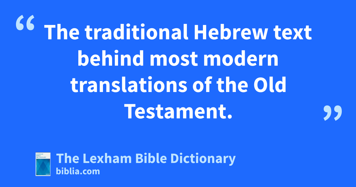 Masoretic Text The traditional Hebrew text behind most modern translations of the Old Testament.