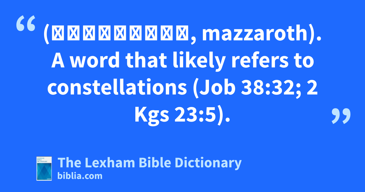 Mazzaroth (מַזָּרוֹת, mazzaroth). A word that likely refers to constellations (Job 38:32; 2 Kgs 23:5).