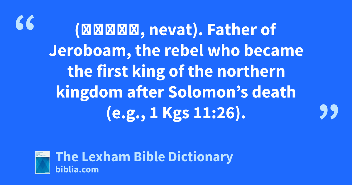 Nebat (נְבָט, nevat). Father of Jeroboam, the rebel who became the first king of the northern kingdom after Solomon’s death (e.g., 1 Kgs 11:26).