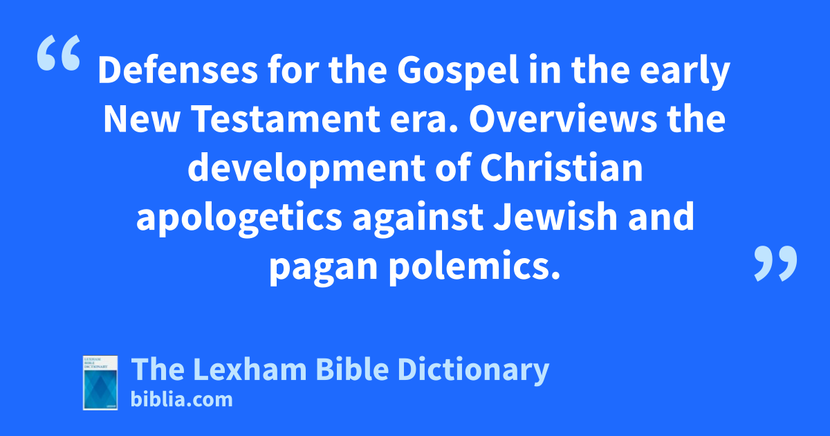 New Testament Apologetics Defenses for the Gospel in the early New Testament era. Overviews the development of Christian apologetics against Jewish and pagan polemics.