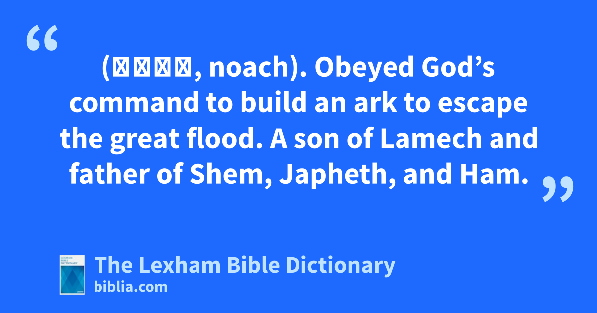 Noah, Son of Lamech (נֹחַ, noach). Obeyed God’s command to build an ark to escape the great flood. A son of Lamech and father of Shem, Japheth, and Ham.