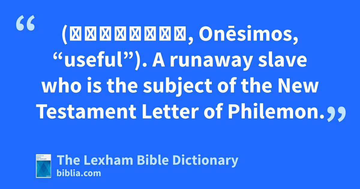 Onesimus (Ὀνήσιμος, Onēsimos, “useful”). A runaway slave who is the subject of the New Testament Letter of Philemon.