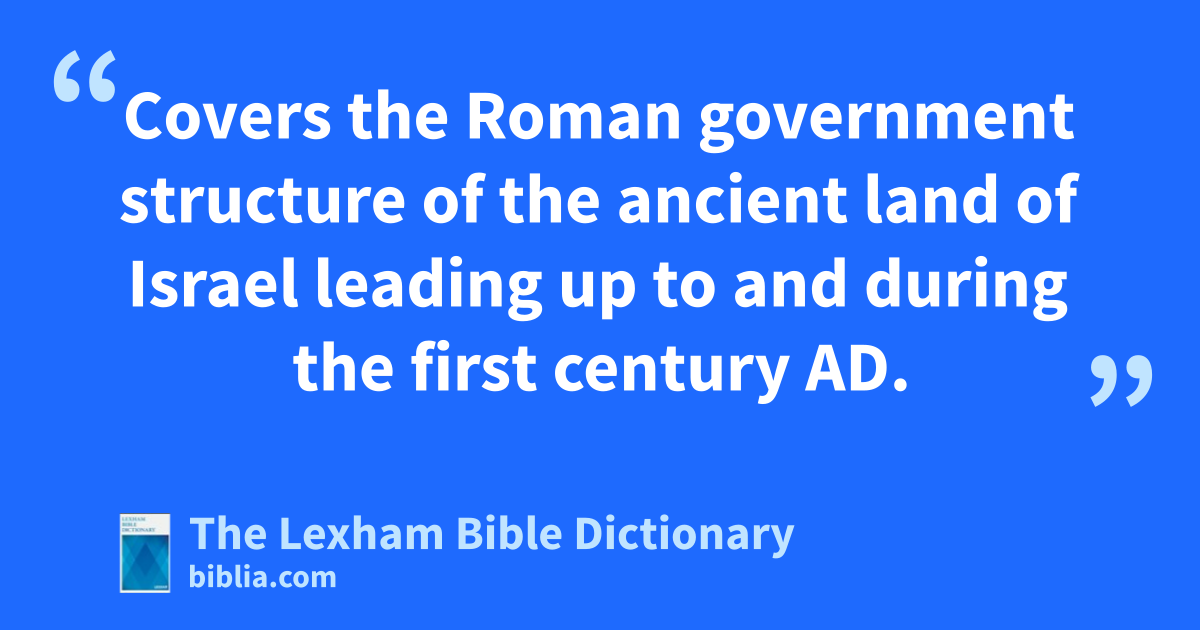 Palestine, Administration of, Roman Covers the Roman government structure of the ancient land of Israel leading up to and during the first century ad.