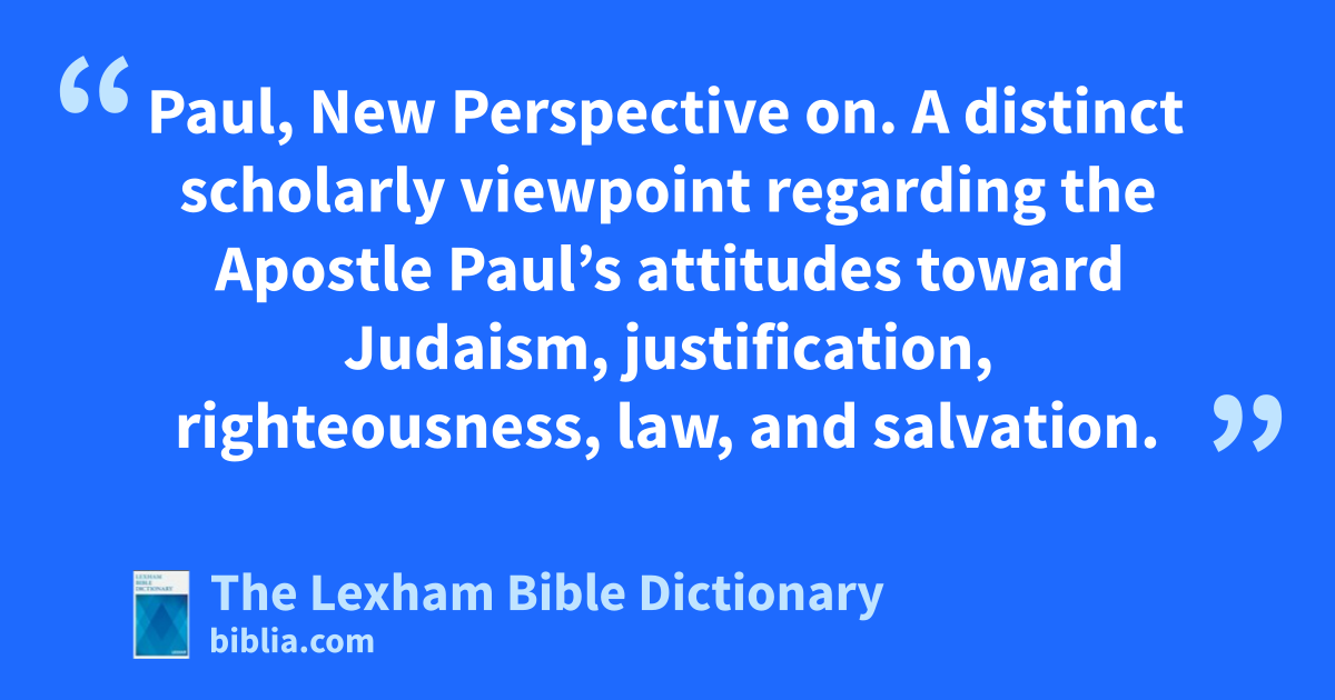 Paul, New Perspective On Paul, New Perspective on. A distinct scholarly viewpoint regarding the Apostle Paul’s attitudes toward Judaism, justification, righteousness, law, and salvation.