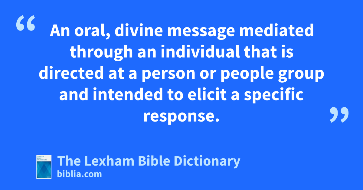 Prophecy An oral, divine message mediated through an individual that is directed at a person or people group and intended to elicit a specific response.