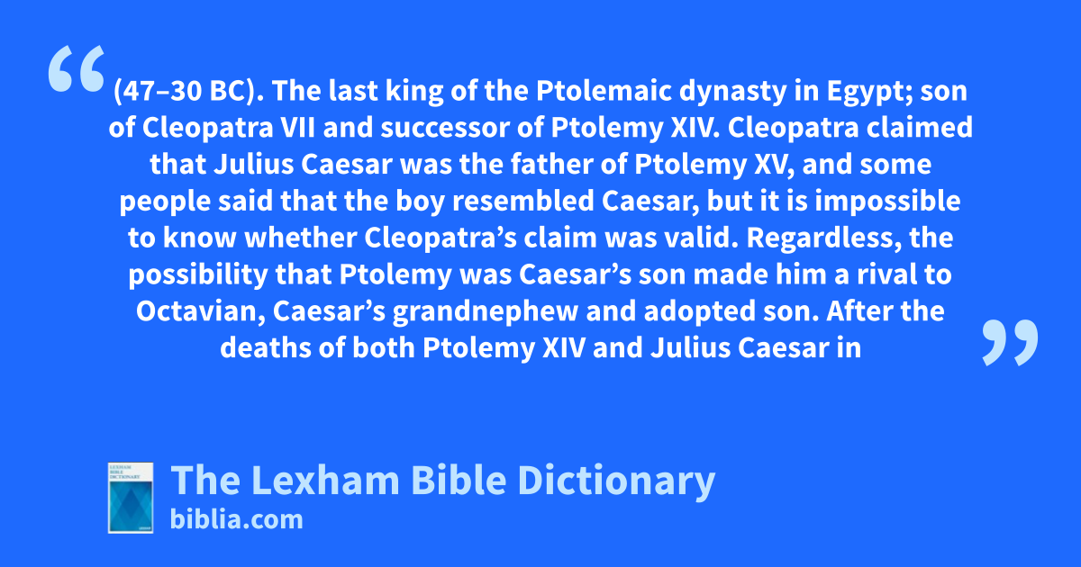 Ptolemy XV Caesarion (47–30 bc). The last king of the Ptolemaic dynasty in Egypt; son of Cleopatra VII and successor of Ptolemy XIV.