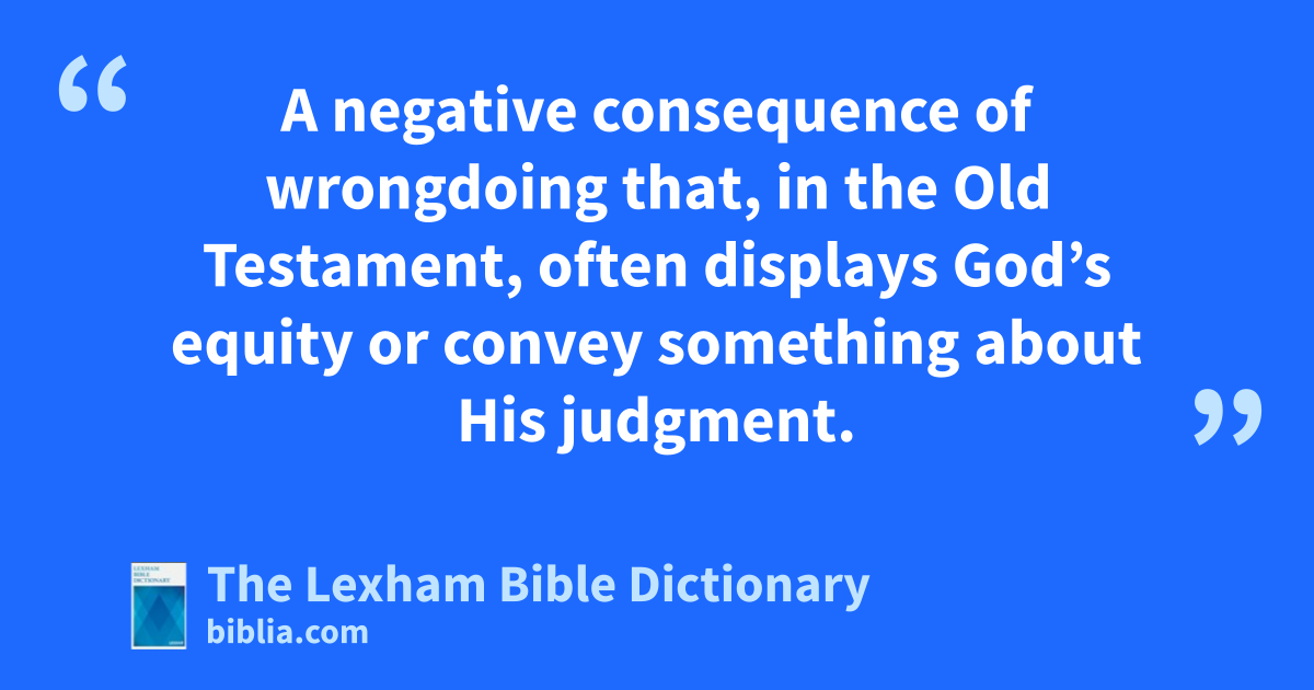 Punishment A negative consequence of wrongdoing that, in the Old Testament, often displays God’s equity or convey something about His judgment.