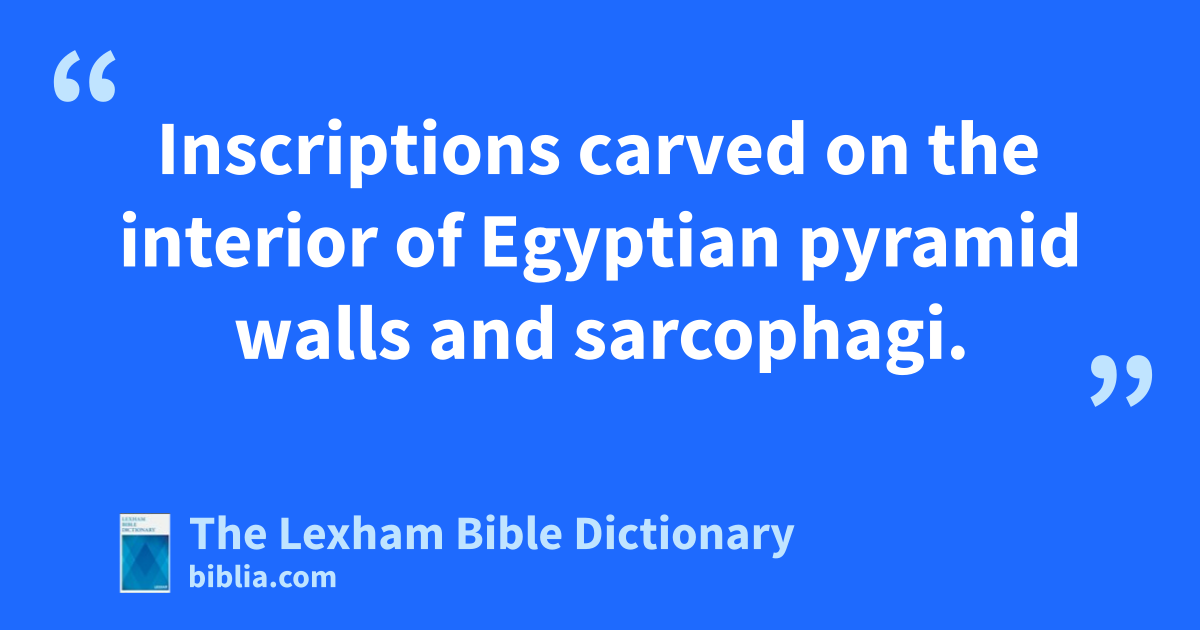 Pyramid Texts Inscriptions carved on the interior of Egyptian pyramid walls and sarcophagi.