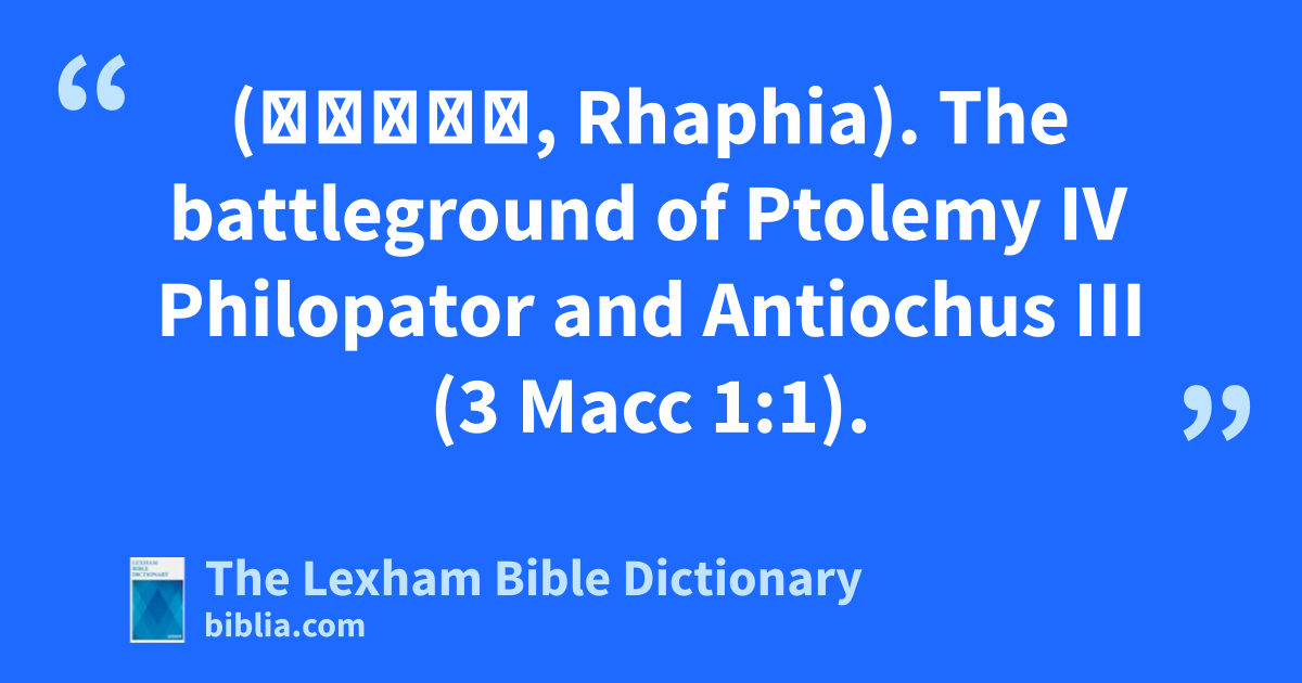 Raphia (Ῥαφια, Rhaphia). The battleground of Ptolemy IV Philopator and Antiochus III (3 Macc 1:1).