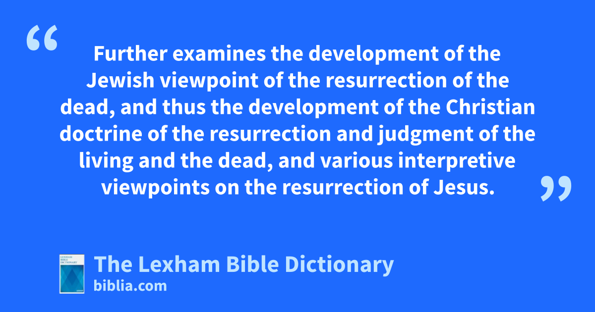 Resurrection, Critical Issues Further examines the development of the Jewish viewpoint of the resurrection of the dead, and thus the development of the Christian doctrine of the resurrection and judgment of the living and the dead, and various interpretive viewpoints on the resurrection of Jesus.