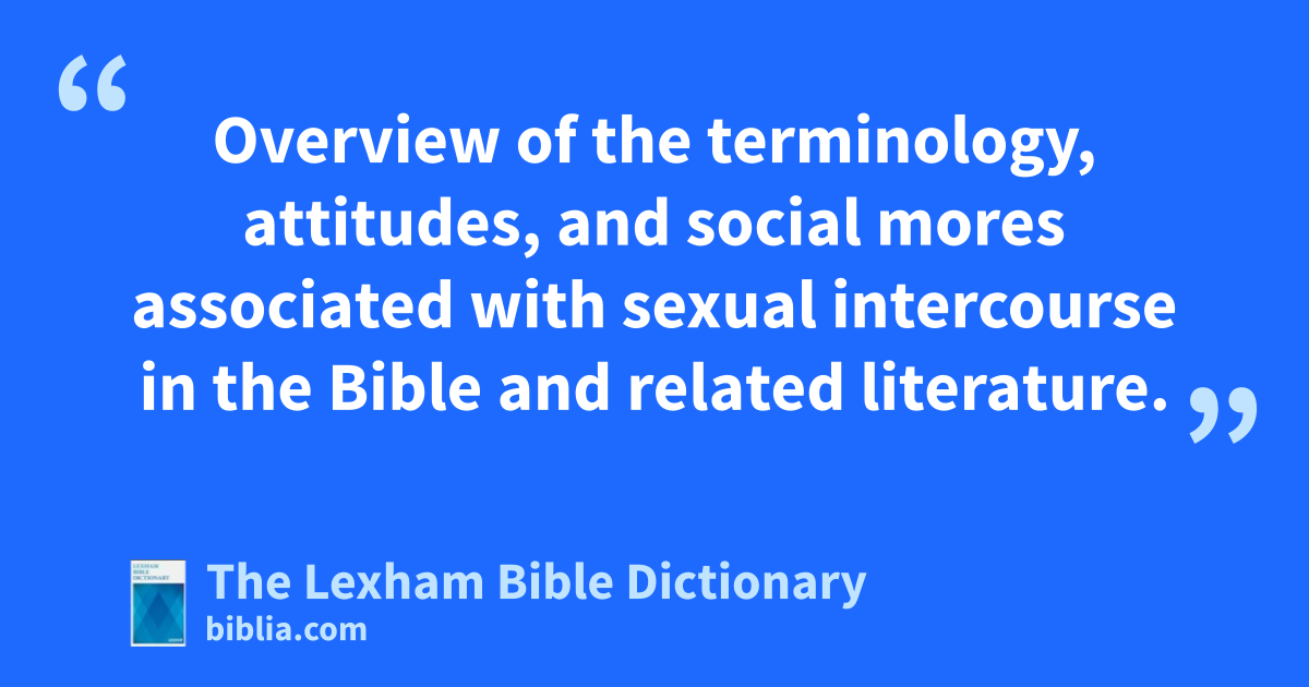 Sexuality Overview of the terminology, attitudes, and social mores associated with sexual intercourse in the Bible and related literature.