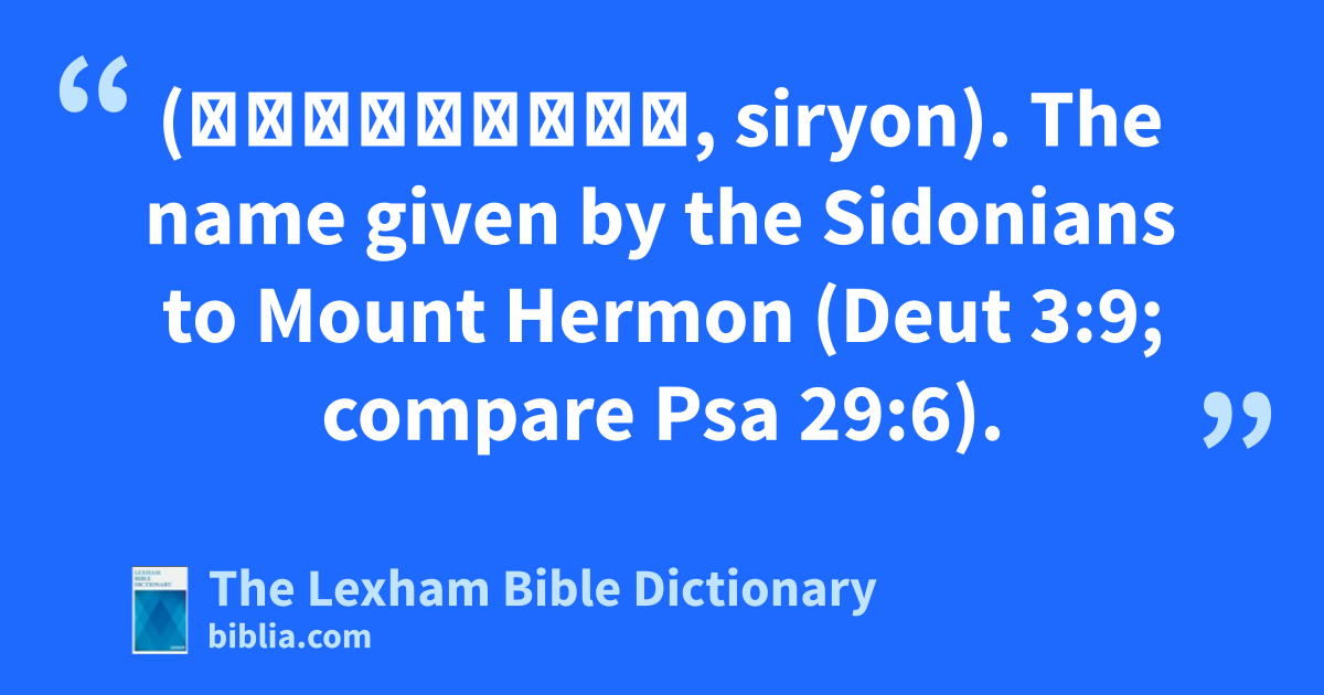 Sirion (שִׂרְיוֹן, siryon). The name given by the Sidonians to Mount Hermon (Deut 3:9; compare Psa 29:6).