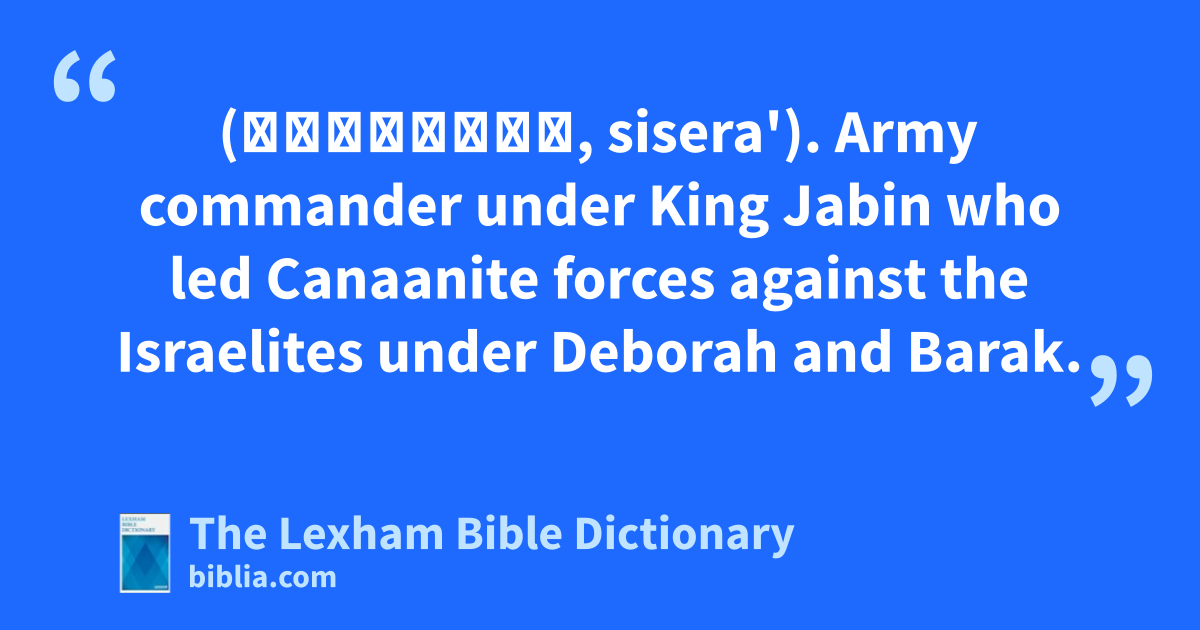 Sisera the Commander (סִיסְרָא, sisera'). Army commander under King Jabin who led Canaanite forces against the Israelites under Deborah and Barak.