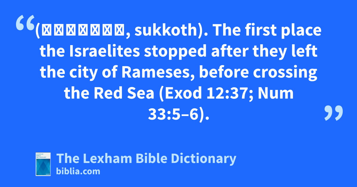 Succoth in Egypt (סֻכּוֹת, sukkoth). The first place the Israelites stopped after they left the city of Rameses, before crossing the Red Sea (Exod 12:37; Num 33:5–6).