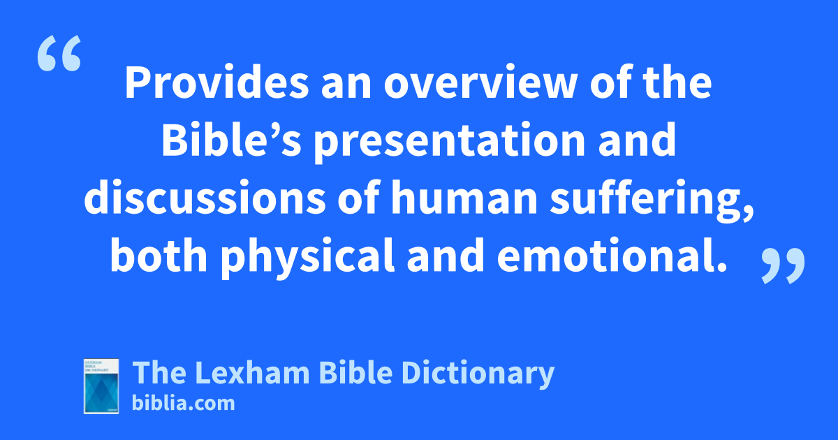 Suffering Provides an overview of the Bible’s presentation and discussions of human suffering, both physical and emotional.