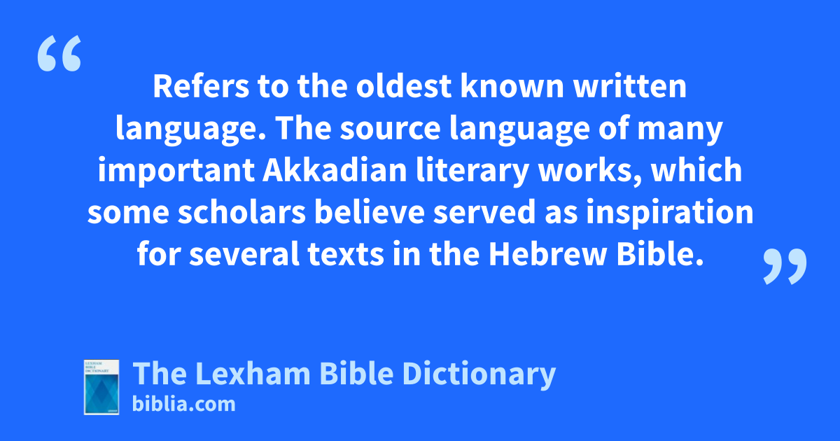 Sumerian Language Refers to the oldest known written language. The source language of many important Akkadian literary works, which some scholars believe served as inspiration for several texts in the Hebrew Bible.