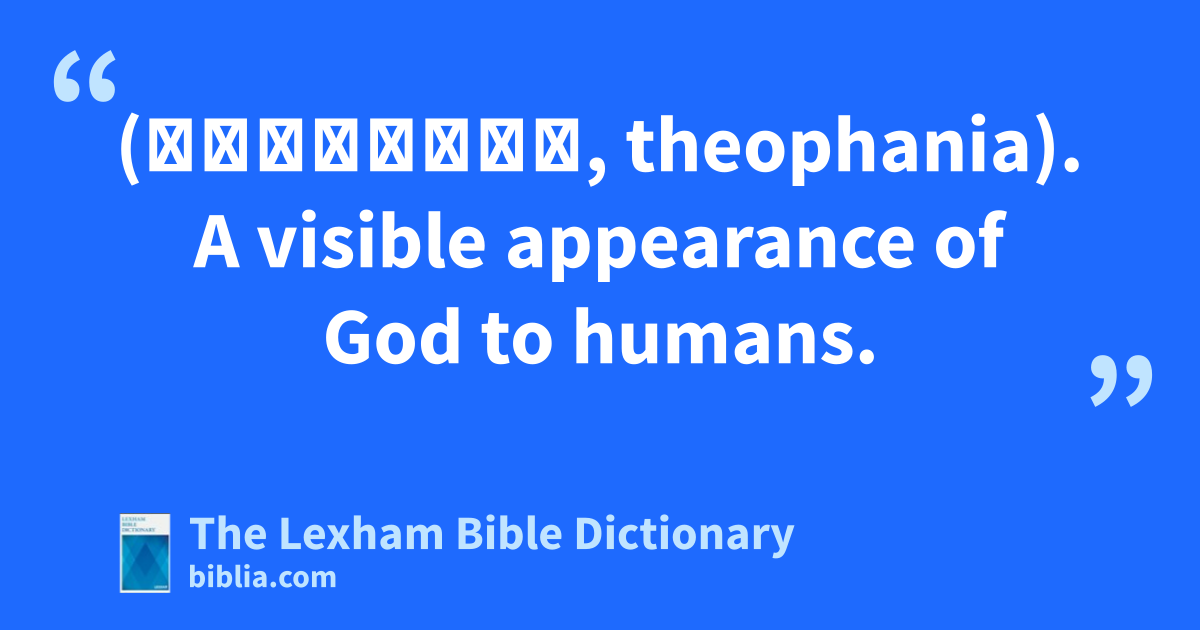 Theophany (θεοφάνια, theophania). A visible appearance of God to humans.