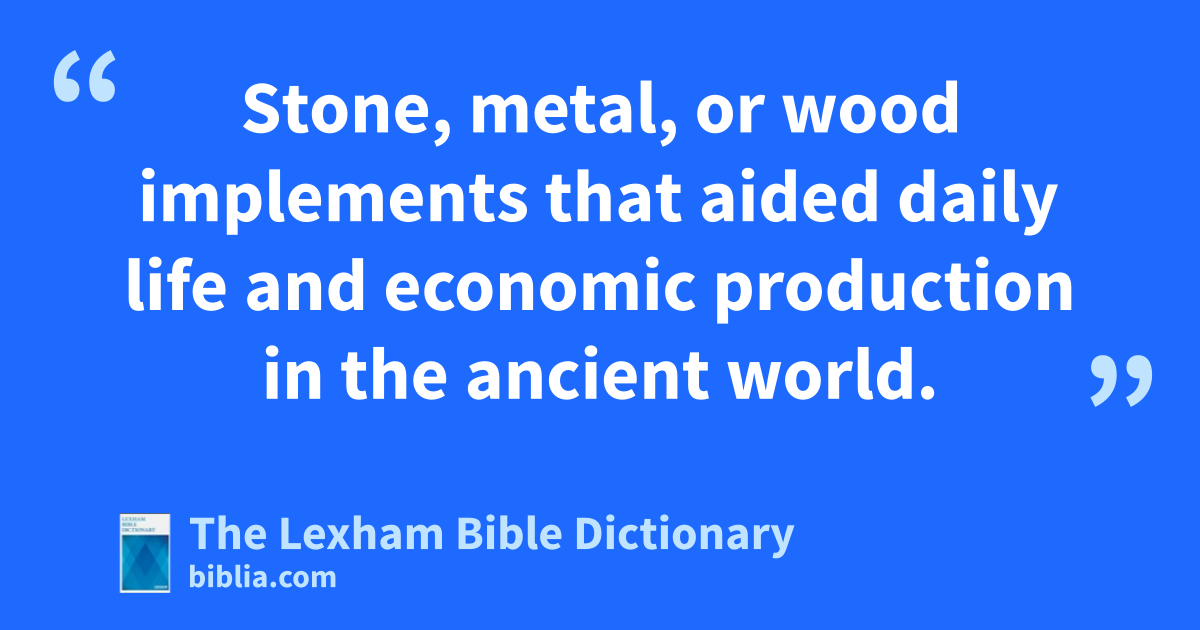 Tools Stone, metal, or wood implements that aided daily life and economic production in the ancient world.