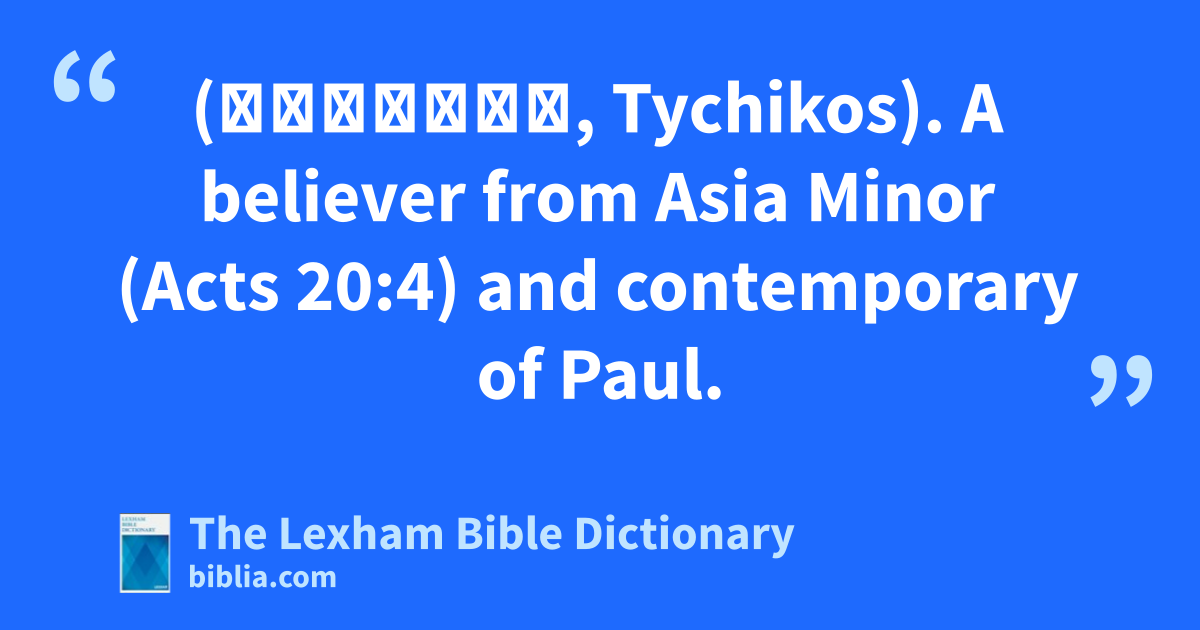 Tychicus (Τυχικός, Tychikos). A believer from Asia Minor (Acts 20:4) and contemporary of Paul.