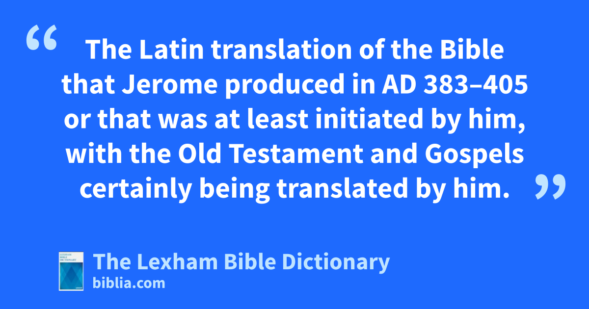 Vulgate The Latin translation of the Bible that Jerome produced in ad 383–405 or that was at least initiated by him, with the Old Testament and Gospels certainly being translated by him.