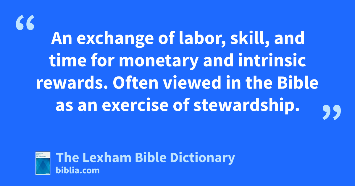 Work An exchange of labor, skill, and time for monetary and intrinsic rewards. Often viewed in the Bible as an exercise of stewardship.
