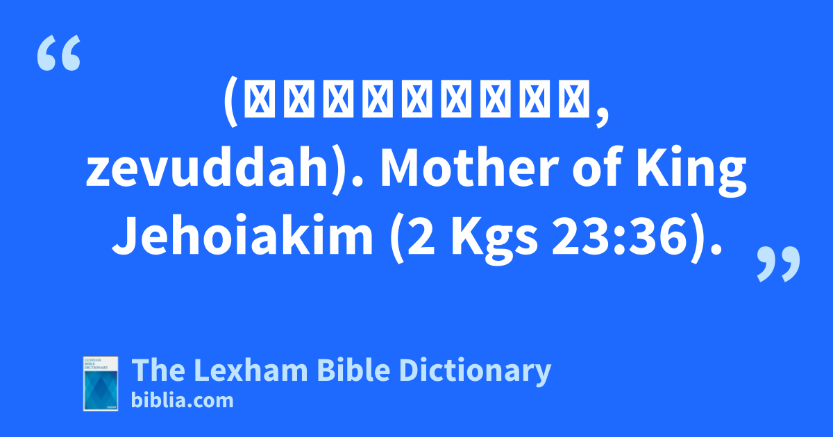Zebidah, Daughter of Pedaiah (זְבוּדָּה, zevuddah). Mother of King Jehoiakim (2 Kgs 23:36).