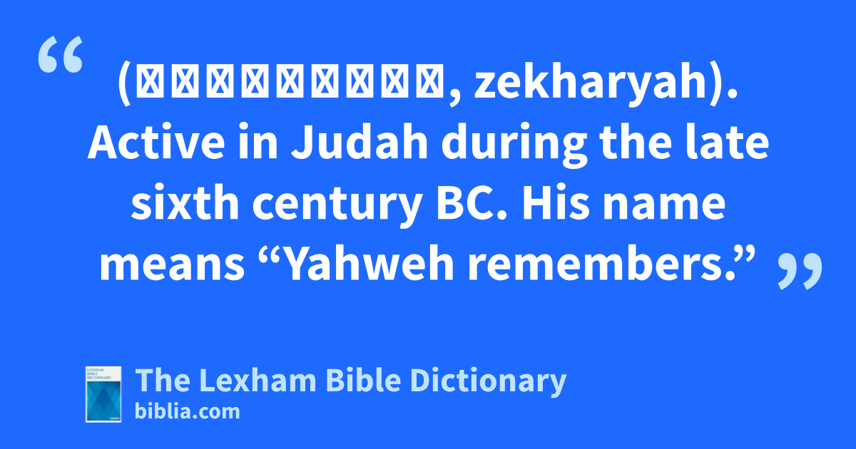 Zechariah the Prophet (זְכַרְיָה, zekharyah). Active in Judah during the late sixth century bc. His name means “Yahweh remembers.”