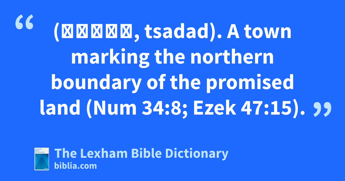 Zedad (צָדָד, tsadad). A town marking the northern boundary of the promised land (Num 34:8; Ezek 47:15).